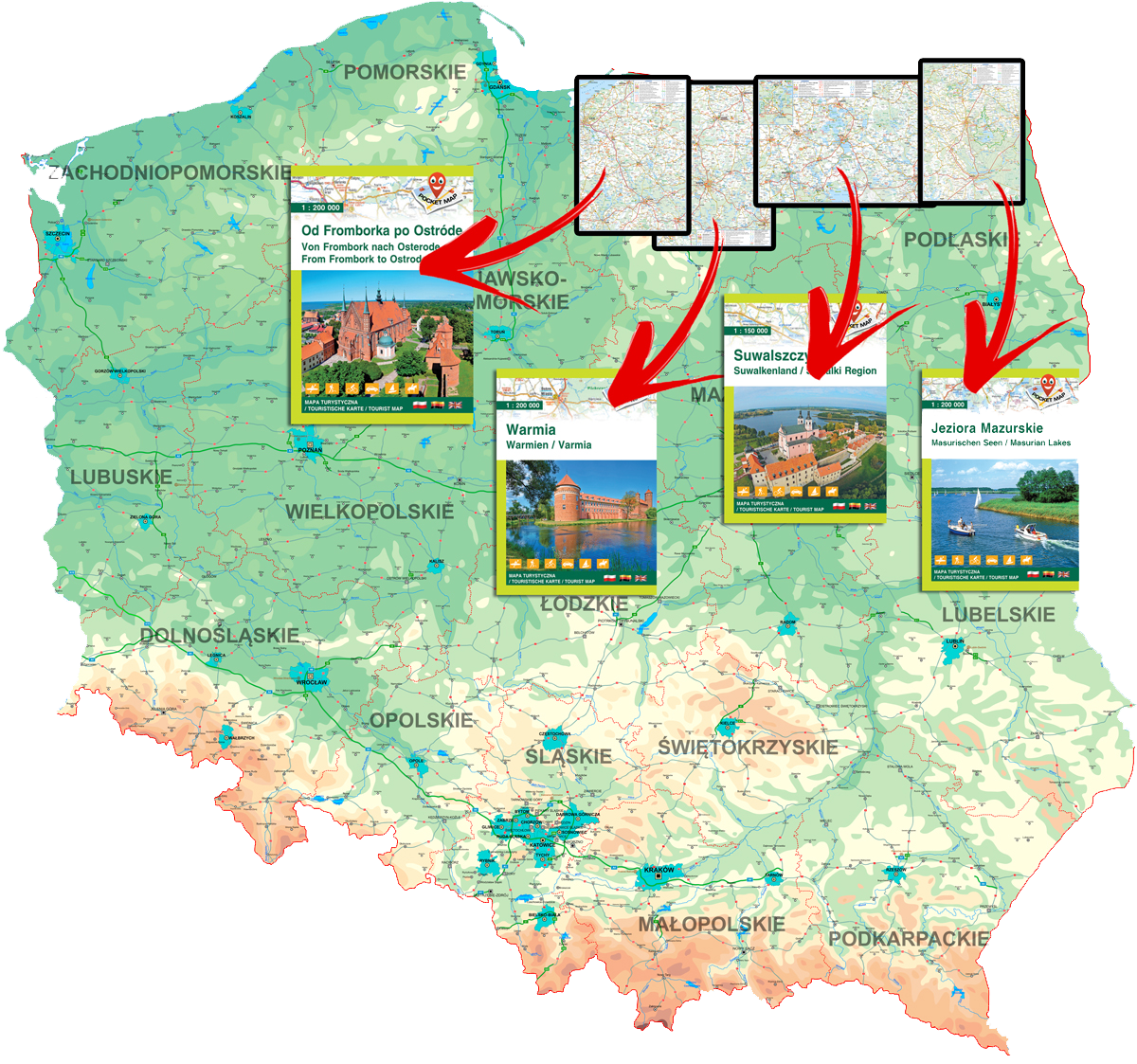 Mapy PocketMap mają kompaktowy, kieszonkowy format, dzięki czemu są wygodne w użyciu podczas zwiedzania. Zawierają starannie wybrane informacje o najważniejszych punktach turystycznych, zabytkach, trasach spacerowych oraz miejscach wartych odwiedzenia. Dzięki nim użytkownicy mogą łatwo zaplanować zwiedzanie i nie przeoczyć najciekawszych atrakcji.